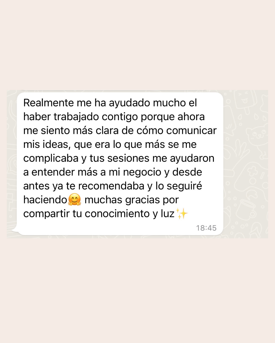 → Recibes un formulario para llenar sobre tu situación actual, lo que a mi me ayudará a trabajar en tu problema específico